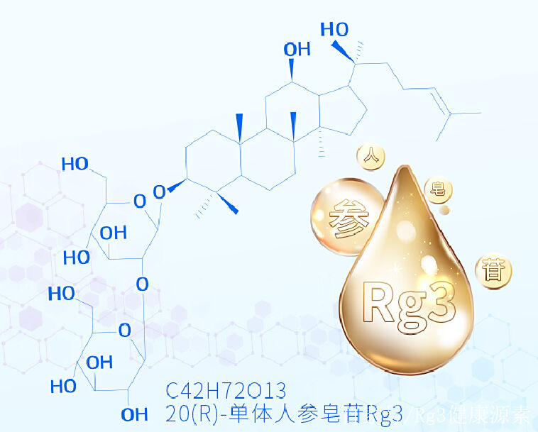 Ginsenoside Rg3 is a tetracyclic triterpenoid saponin and a rare active ingredient in ginseng. Its chemical name is 20 (S/R) - damanenediol-3-O - β - D-glucopyranose (1 → 2) - β - D-glucopyranose, with a molecular formula of C ₄₂ H ₇₂ O ₁ I3 and a molecular weight of 784.30.